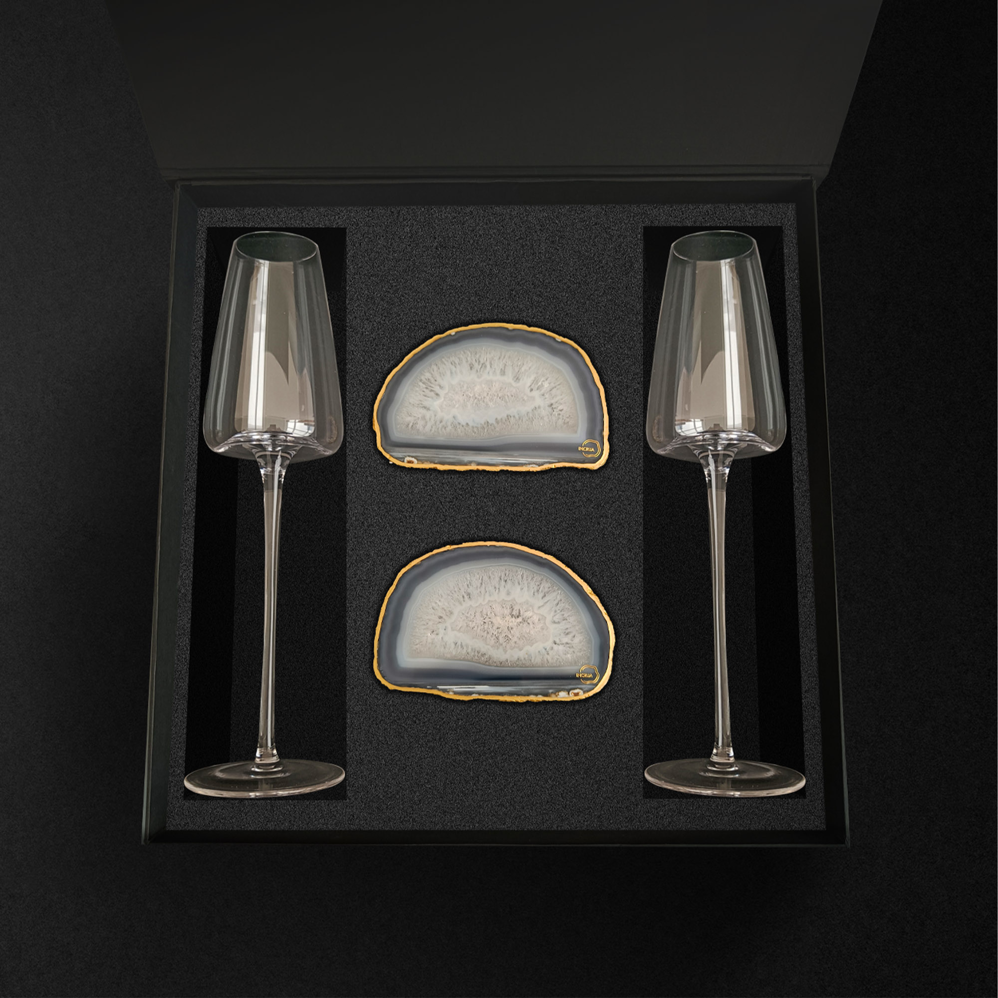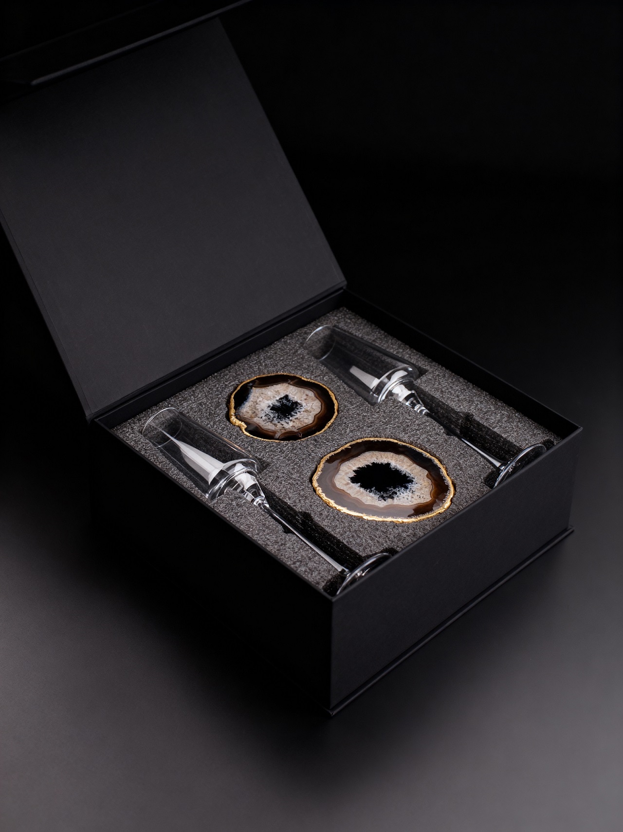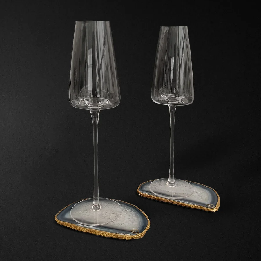 2 бокала для шампанского и 2 среза агата