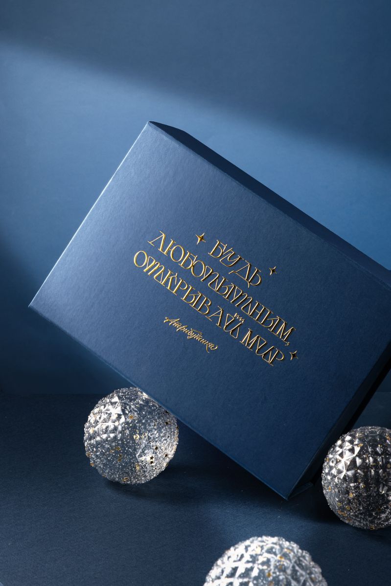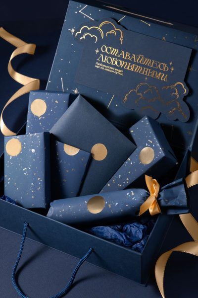 Сама коробка — это уже волшебство. Переливающаяся металлизированная надпись на крышке гласит: “Оставайтесь любопытными”.