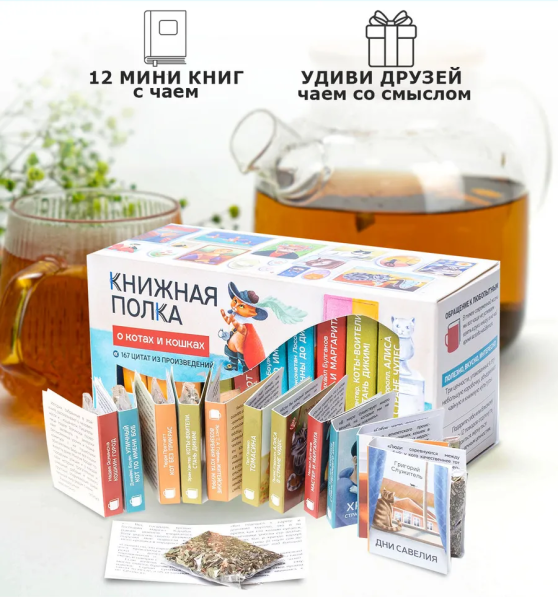 Чай со смыслом — это тематические наборы из 12 мини книг с цитатами авторов произведений и качественный листовой чай, который мы фасуем сами в чайные пакетики. Пакетик с чаем вложен внутрь каждой...