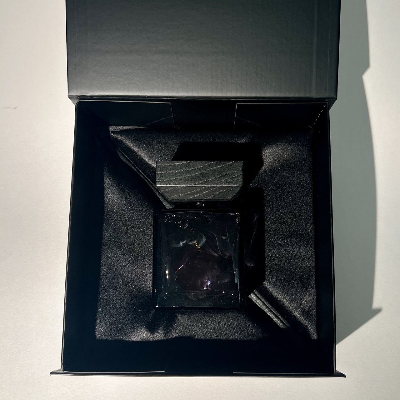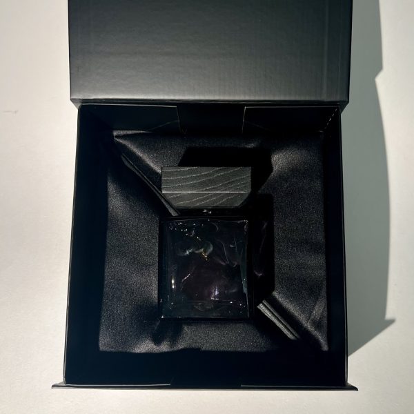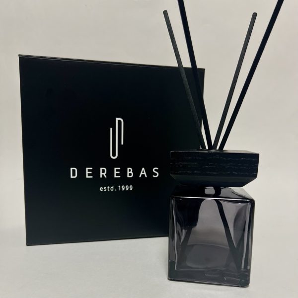 Диффузор в минималистичном темном флаконе с деревянной крышкой.