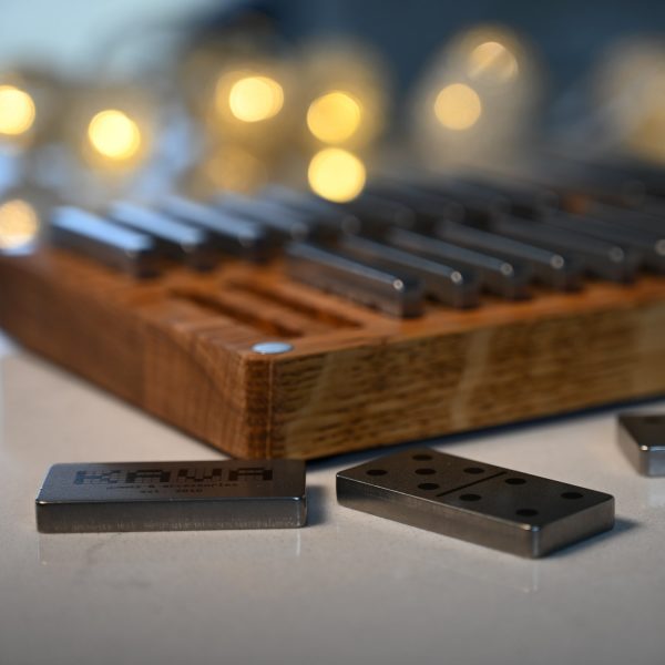 Домино ручной работы из благородного дуба и костяшек из специально обработанной нержавеющей стали.