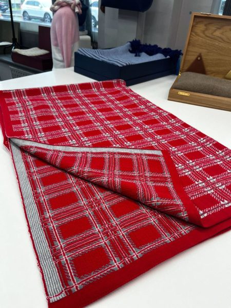 Двусторонний плед с кнопкой, связан традиционным узором «шотландская клетка»,