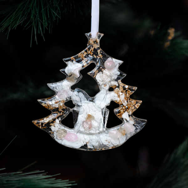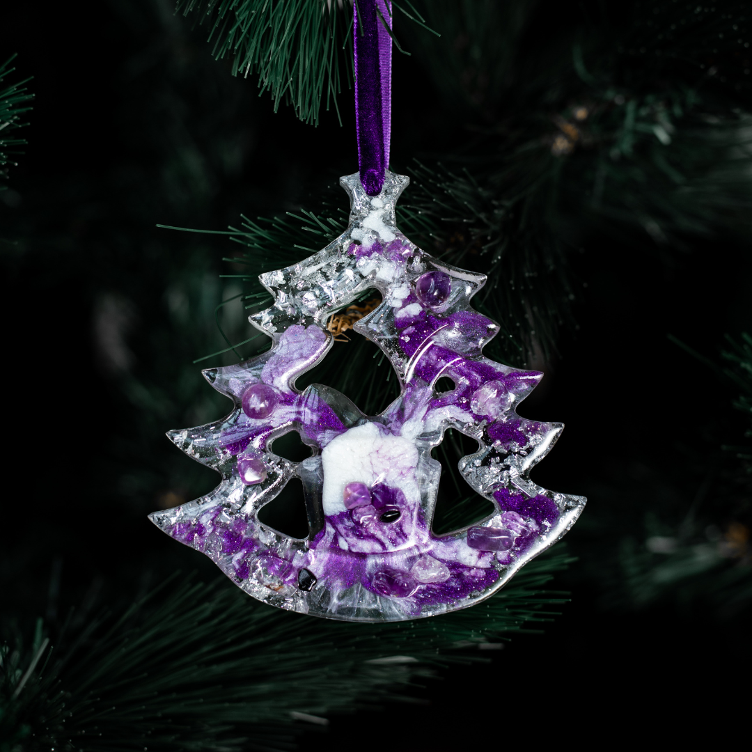 Игрушка Ёлка из коллекции STORIES — это не просто новогоднее украшение, а настоящая зимняя сказка, созданная руками искусных мастеров. Выполнена из ювелирной эпоксидной смолы и украшена галтовкой из натуральных минералов. Доступна в четырех цветах: Аметист, Розовый кварц, Сапфир и Горный хрусталь.
