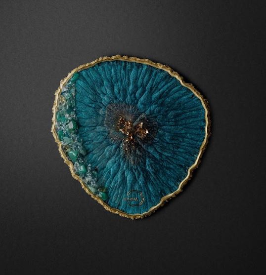 Декоративная интерьерная подставка. Выполнена из ювелирной эпоксидной смолы и украшена галтовкой из натуральных минералов. Доступна в 9 цветах.
