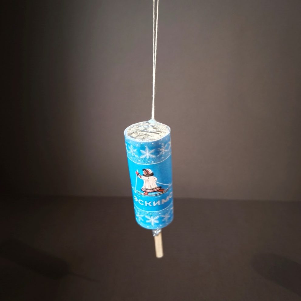 А Вы помните советское эскимо? Оно было символом целой эпохи, одним из любимых мороженых. Пробьют куранты и зажгутся свечи во всех городах, во всех дворах! И будет наше эскимо украшать многие новогодние елки, ведь оно не тает, т.к. сделано вручную по старинной технике картонажа.