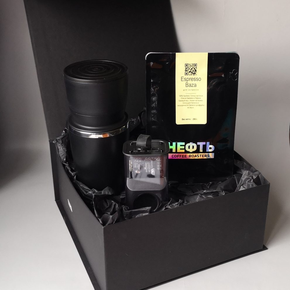Корпоративный подарочный бокс «Нефтяной магнат» – настоящее путешествие в мир кофе.
