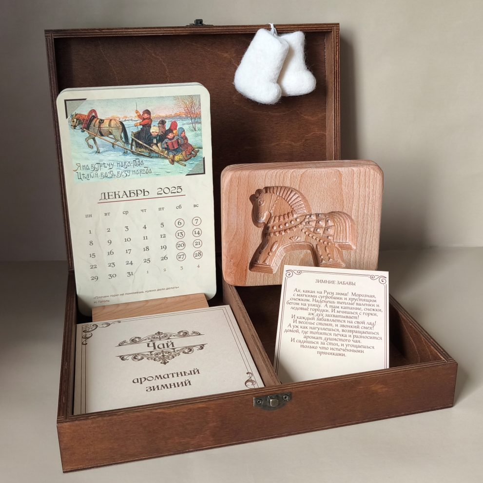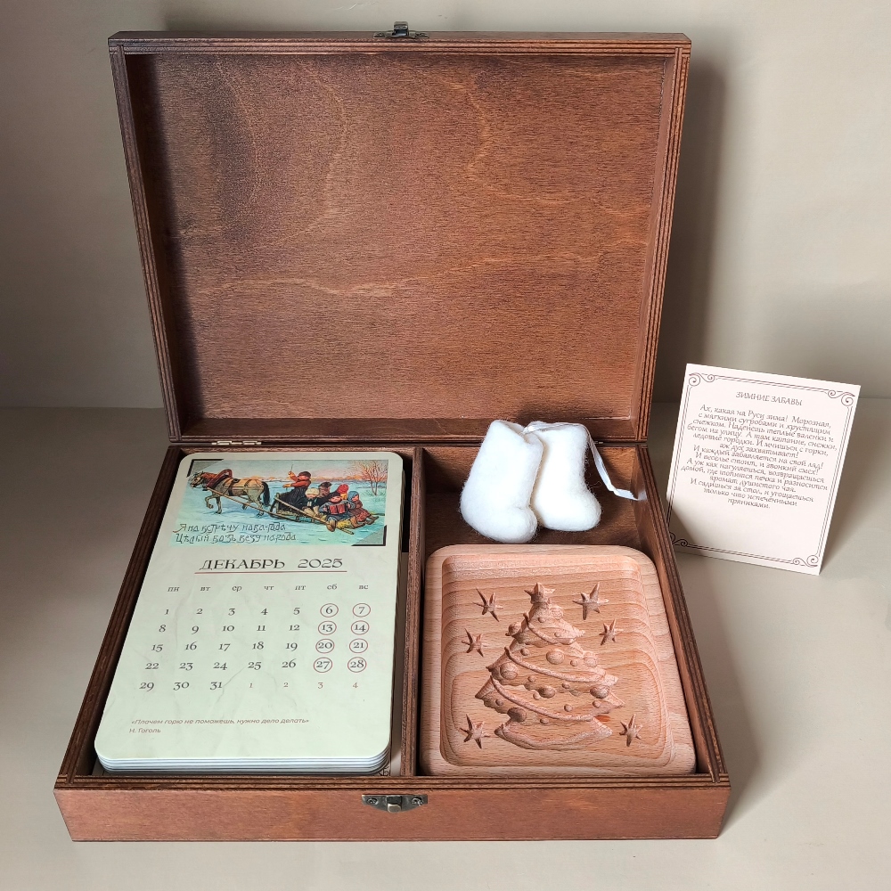 -Ретро-календарь на деревянной подставке (6 двусторонних карточек с покрытием софт-тач)