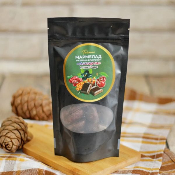 Мармелад желейно-фруктовый Ассорти в шоколаде 150г «Таежно»