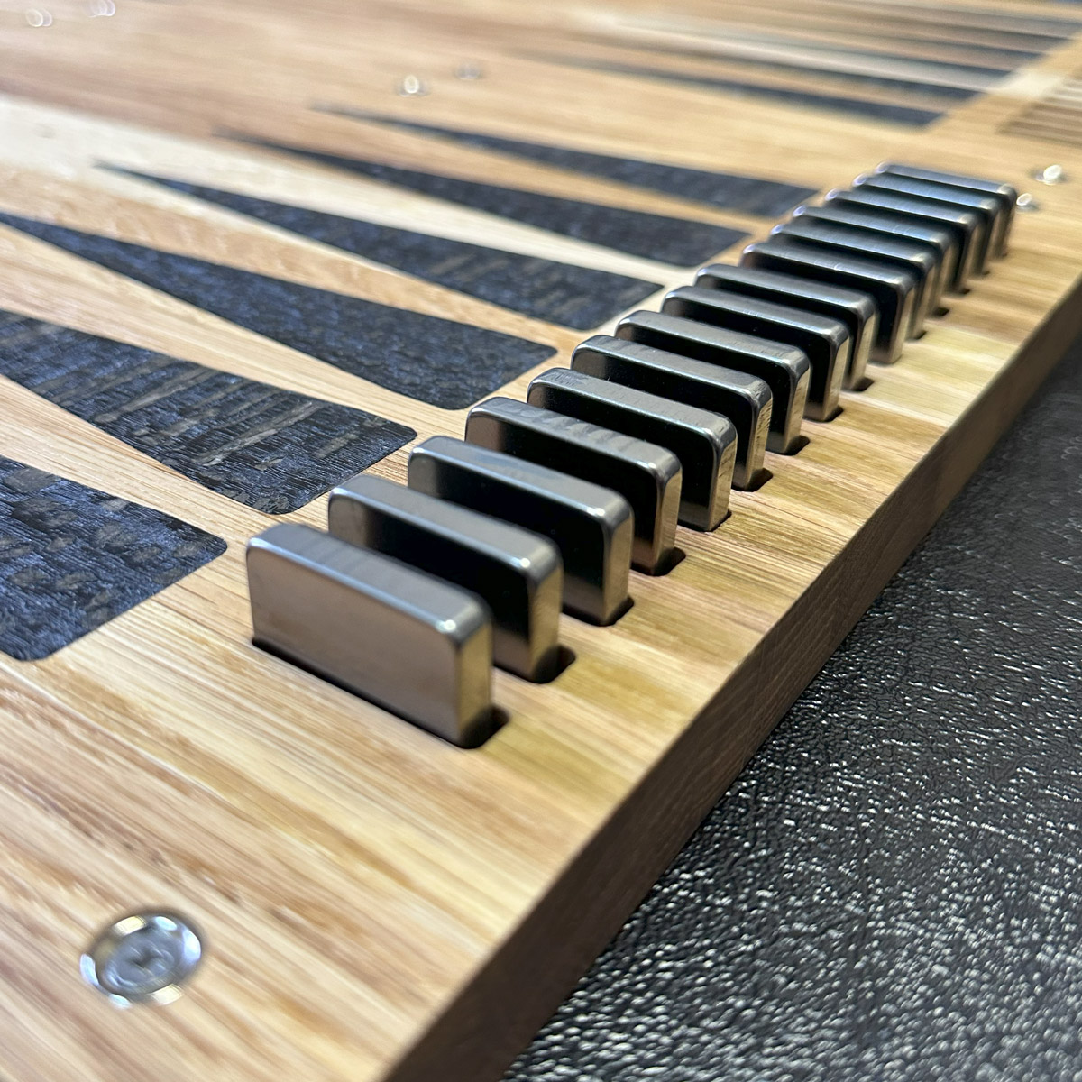 Домино ручной работы из благородного дуба и костяшек из специально обработанной нержавеющей стали.