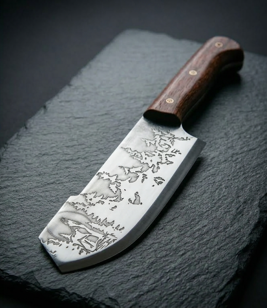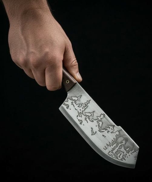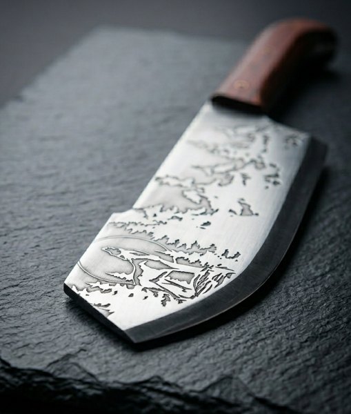 Кованый клинок из стали с закалкой выдержит любые нагрузки. Нож выживания также оснащен удобным чехлом из натуральной кожи для ношения на поясе или рюкзаке.