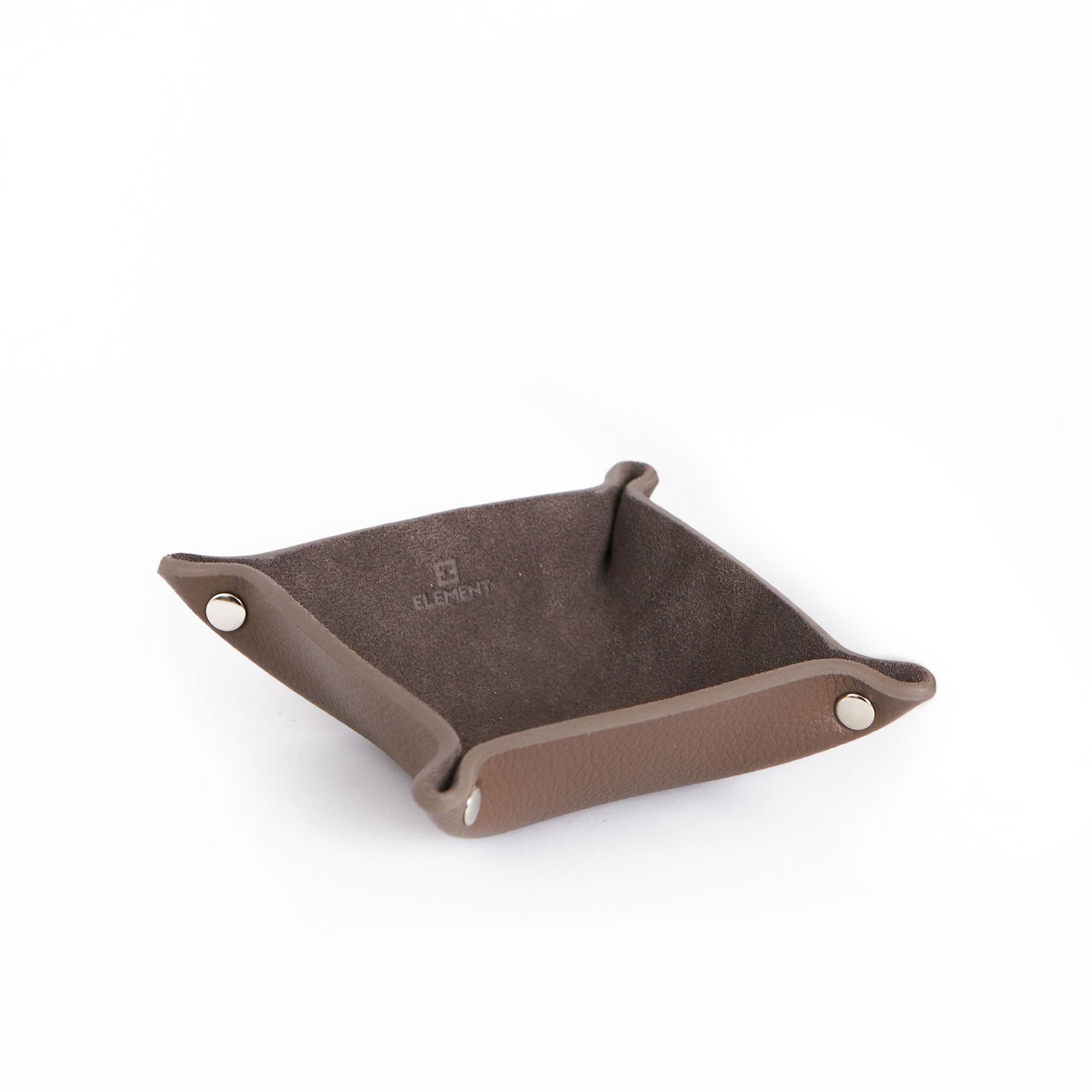 Внутри мелочница покрыта замшей, что дает визуальный акцент, а так же делает её приятной тактильно.