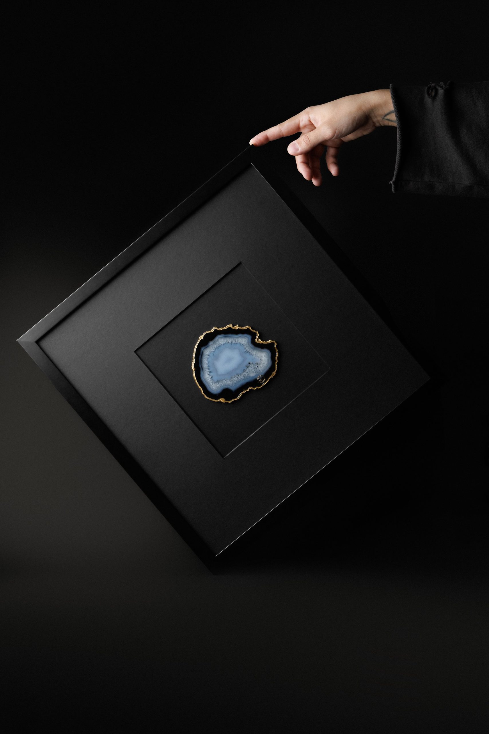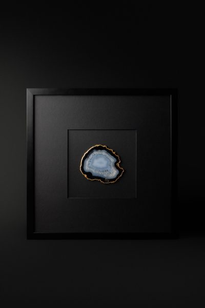 Элегантное в своей простоте это панно представляет собой магическое сочетание природной красоты и современного дизайна. Центральный элемент — агат, с его естественными узорами и глубокими оттенками. Он становится ярким акцентом на фоне строгого чёрного паспарту из дизайнерской бумаги. Эстетика формы. И ничего лишнего.