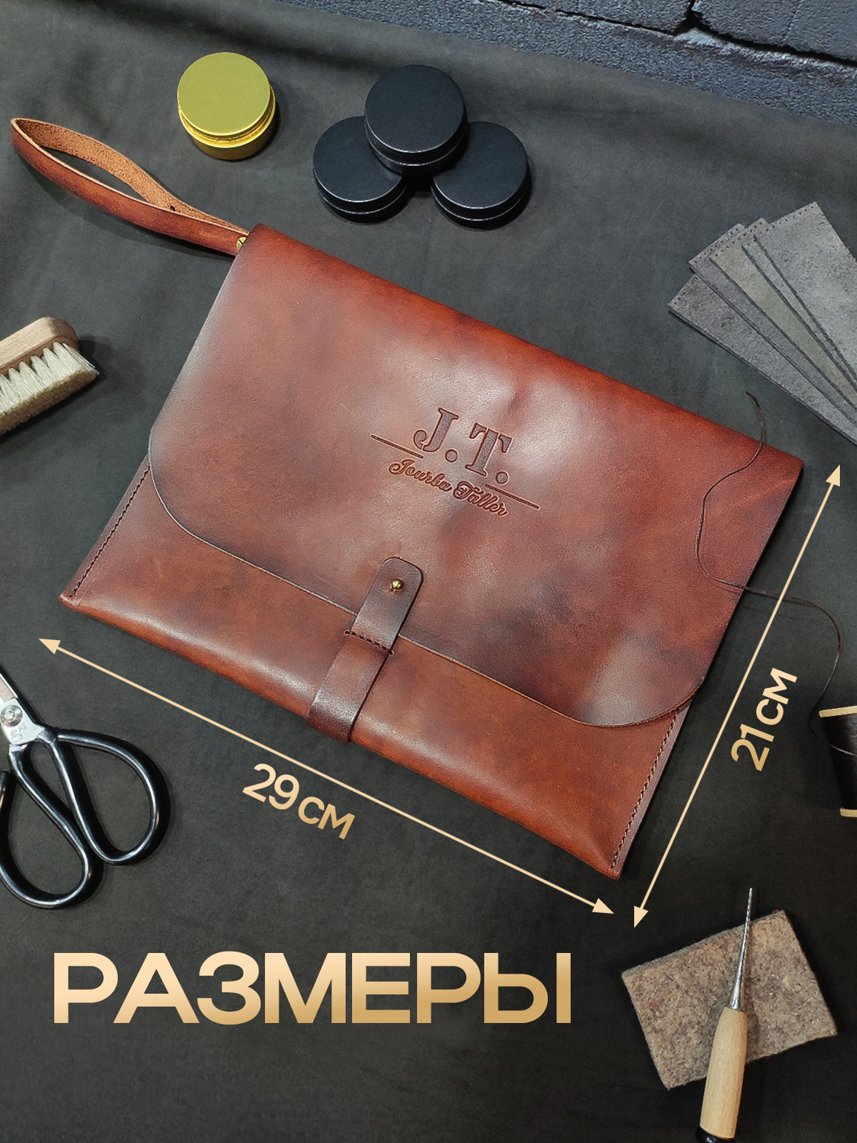Универсальная кожаная папка-конверт А4 для документов, макбука/ноутбука (диагональ 13″). Внутренний размер 31*22см