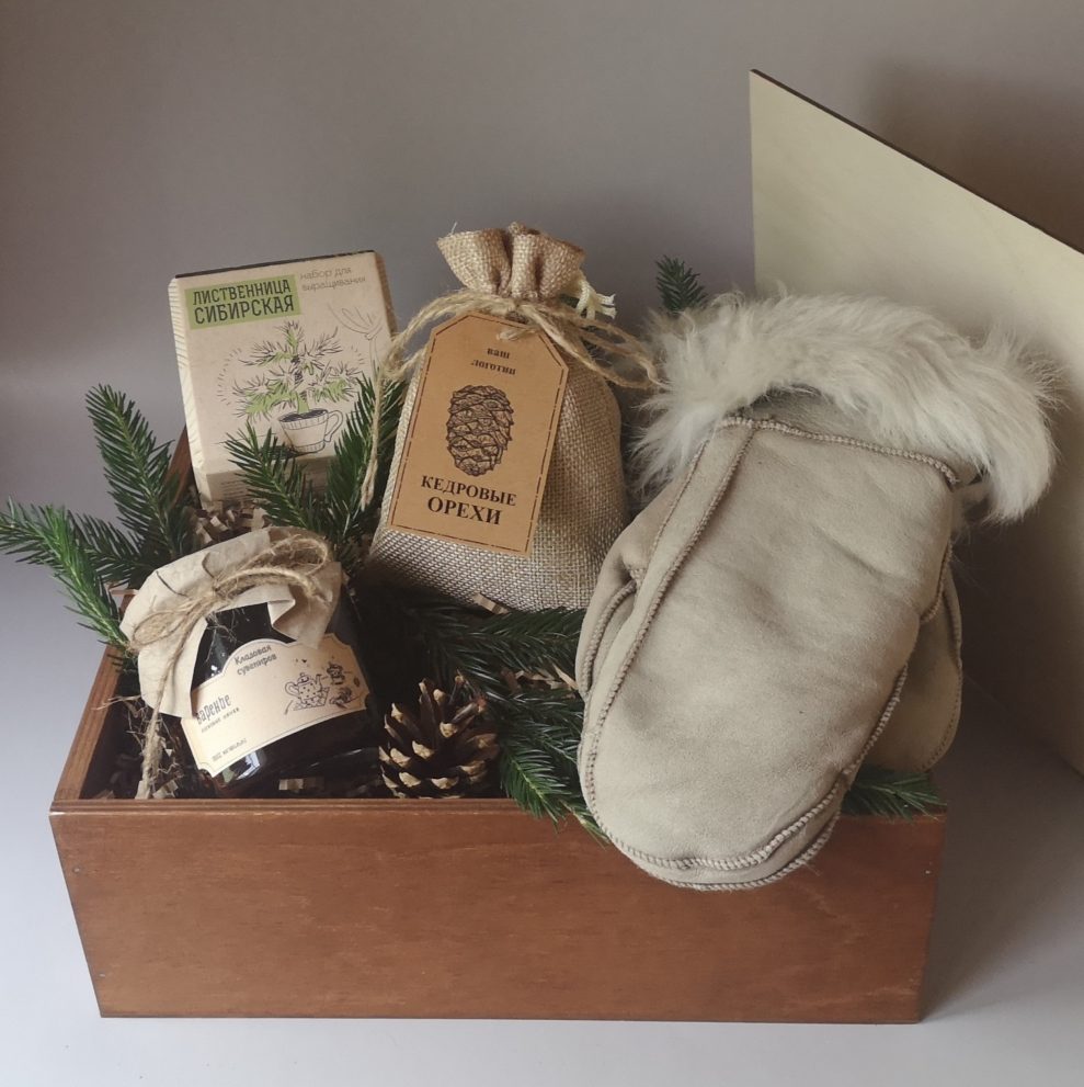 Наш подарочный набор перенесет Вас в самое сердце Сибири. Вы попробуете настоящие лакомства сибирского леса. Варежки из натуральной овчины надежно защитят руки даже в самый лютый мороз. А еще Вы сможете вырастить сибирскую лиственницу прямо у себя на рабочем столе.