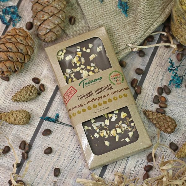 Шоколад горький на меду с имбирем и лимоном 60 г «Таежно»