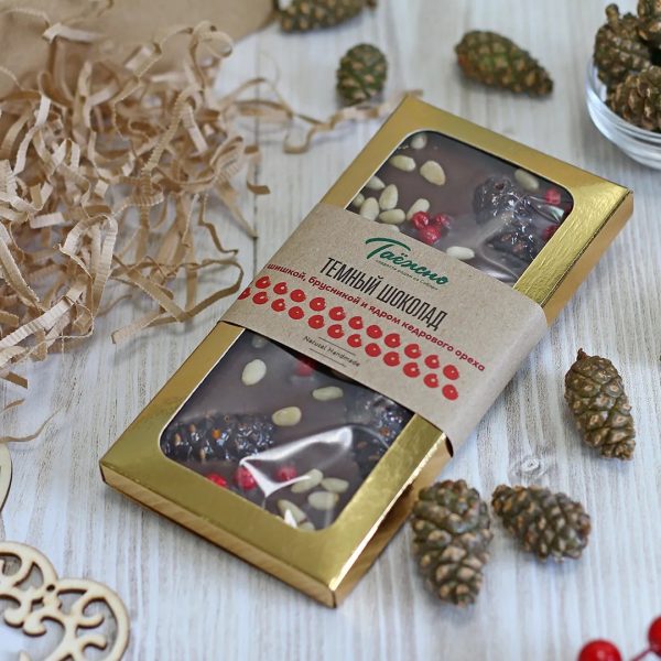 Шоколад темный с шишкой, брусникой и ядром кедрового ореха 80 г «Таёжно»
