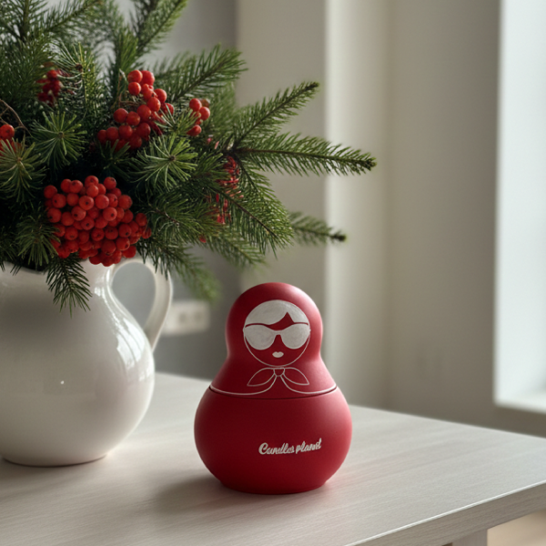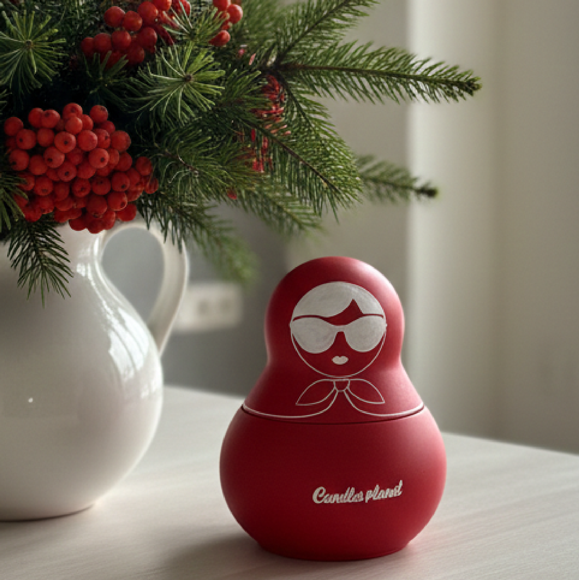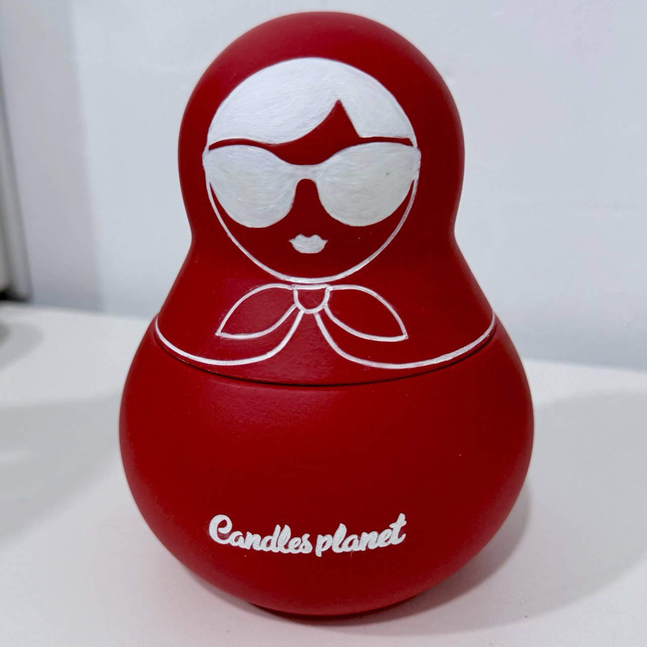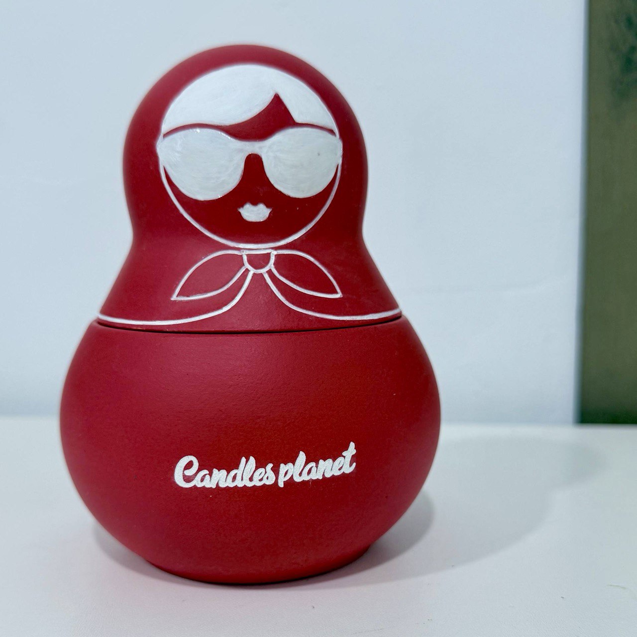 Свеча в гипсовом подсвечнике в форме матрешки.