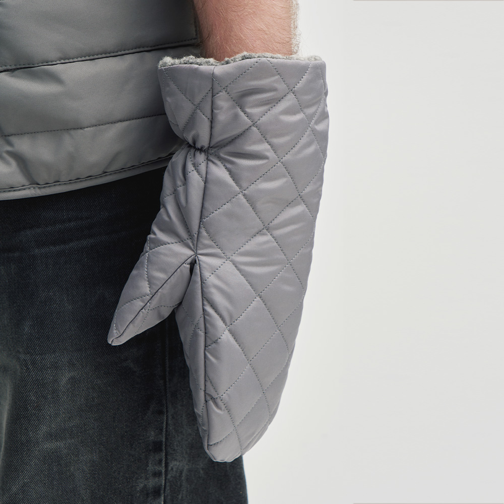 Теплые и непромокаемые варежки из стеганой плащевой ткани и подкладки с ворсом из стопроцентной шерсти. Комфортно садятся даже на крупную руку.